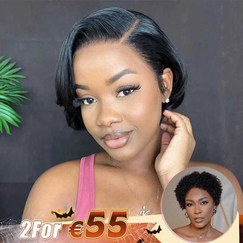 2 đđ¶đč âŹ55đ„Pixie Cut 13x4 Lace Straight Wig+Glueless Easy-Wear Chic Effortless Curly Wool