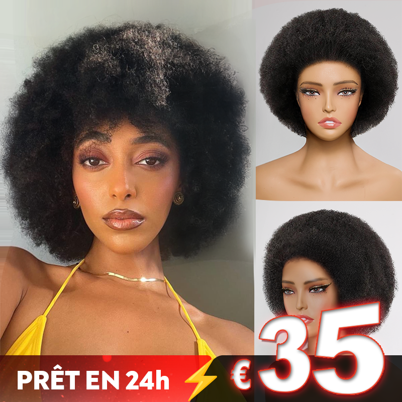 𝐏𝐫𝐞̂𝐭 𝐞𝐧 𝟐𝟒𝐡⚡Afro Bouclé Glueless Bob Wear Go Perruque Sans Colle Cheveux Humains