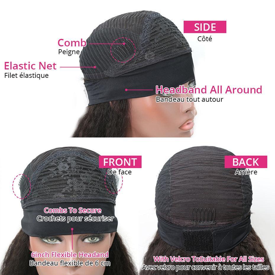 Glueless Bandeau Perruque Cheveux Humains Brésiliens Bouclé 200% Densité Adapté Aux Débutants