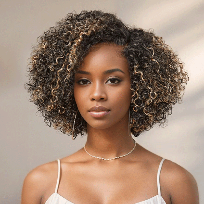Classique Blond Miel Highlight Bob Kinky Curly 13x6 T Partie Dentelle Perruque