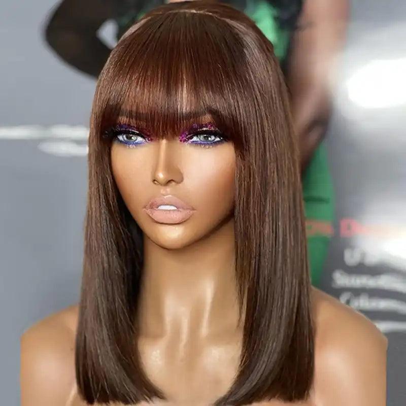 Bob Perruque Avec Frange Perruque Cheveux Humains Lisse 200% Densité