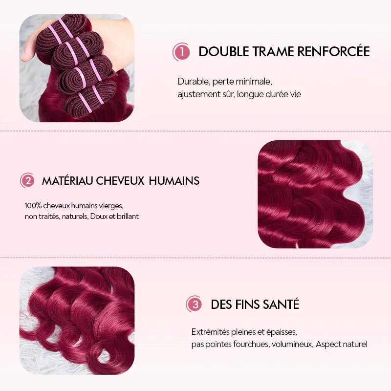 Extensions Cheveux Vierges 99J Tissage Brésilien Cheveux Body Wave