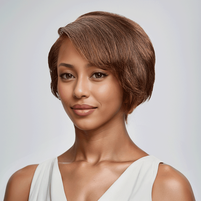 Perruque Bob Brun Chocolat Elégante Coupe Pixie D'aspect Naturel 13x6 T Partie Dentelle