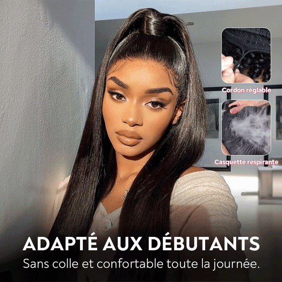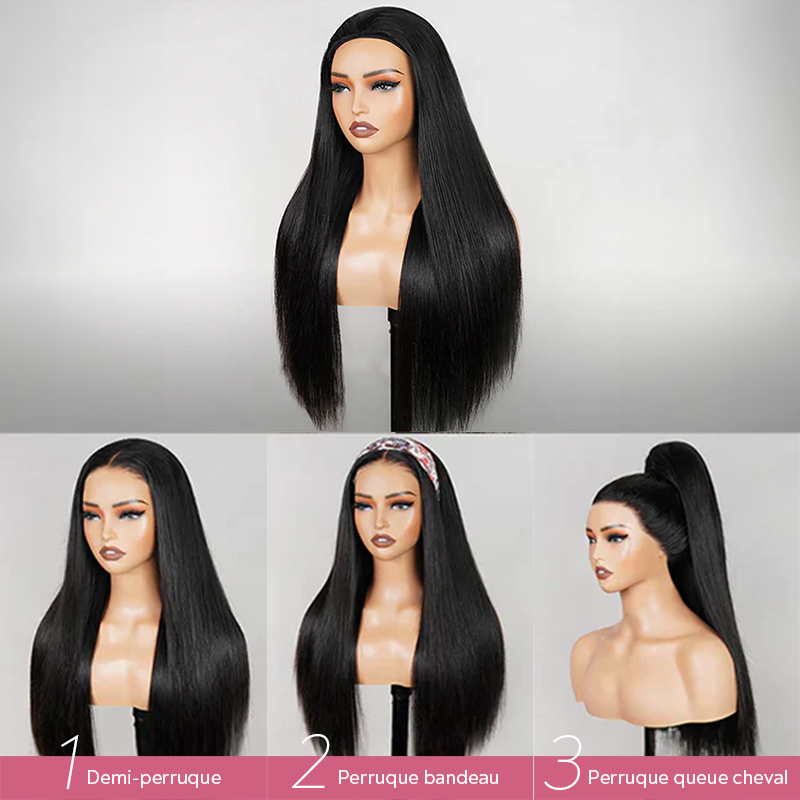 🔥4 In 1 Half Wig Adapté Aux Débutants Lisse Demi-Perruque À Cordon Serrage Flexi-Fit 250% Densité