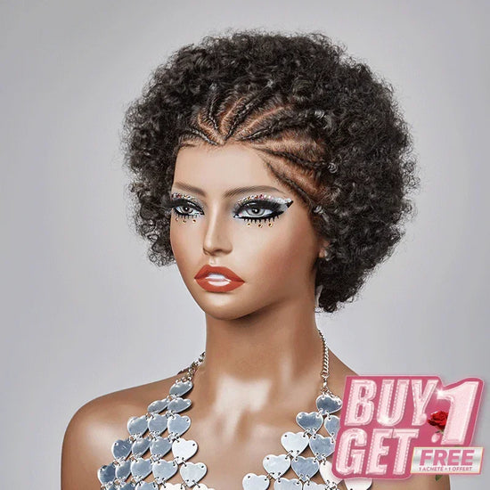 𝑩𝒖𝒚 1 𝑮𝒆𝒕 1 𝑭𝒓𝒆𝒆💥 13x4 Dentelle Boucle Afro 5 Couleur Bob Perruque Cheveux Tressés