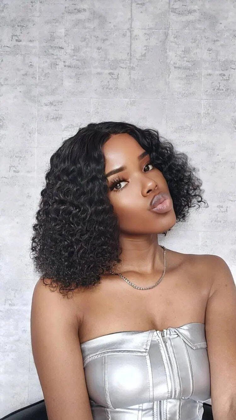 𝓑𝓾𝔂 𝟏 𝓖𝓮𝓽 𝟏𝟏💗Intemporel Dentelle Réaliste 4x4 Lisse Bob Perruque+Bouclés Bob Cheveux Humains