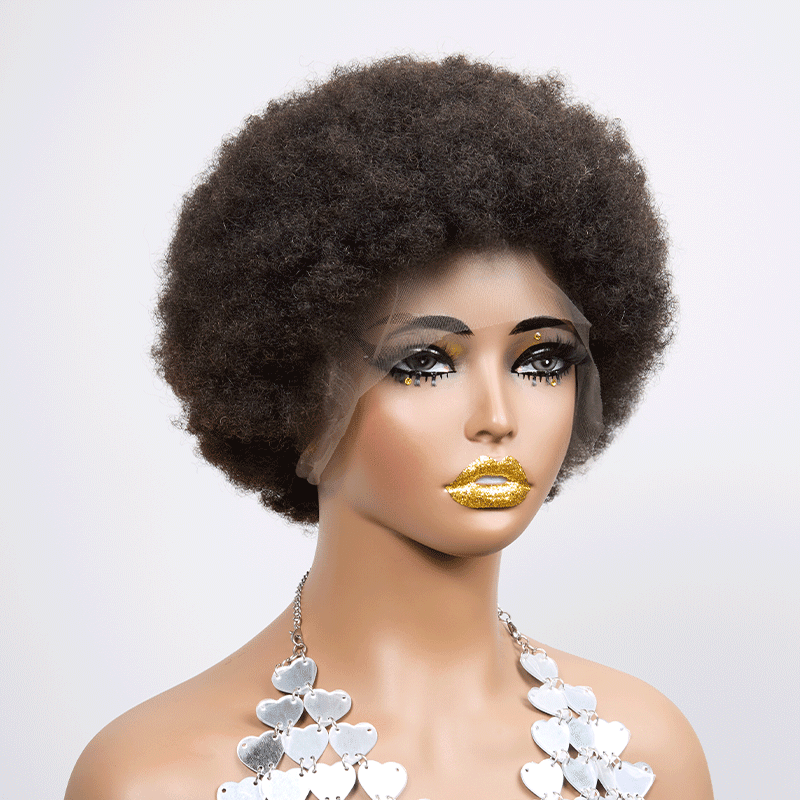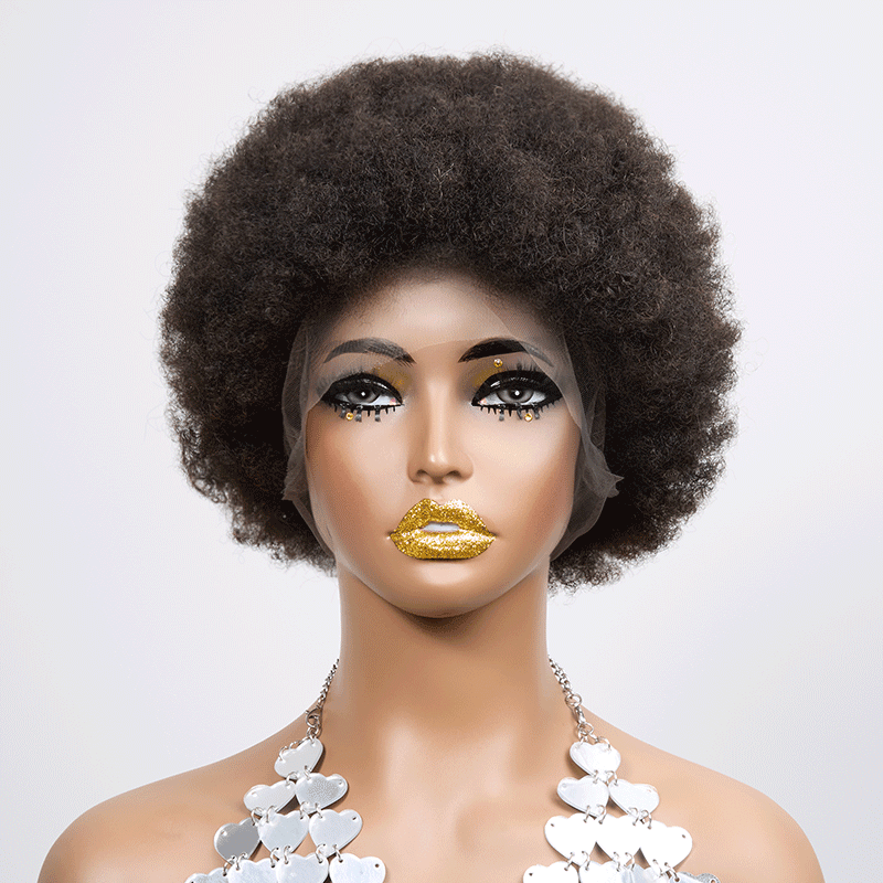 Dentelle Pleine Afro Curly Super Rebondissement Bob Perruque Humain Cheveux