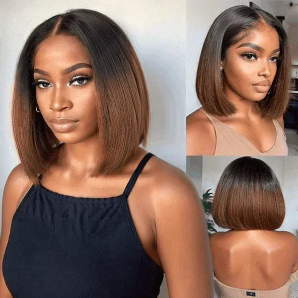 Taille de dentelle | Perruque 1 Highligt Bob:13x2 Dentelle Perruque -300% Densité; Perruque 2 Noir/Ombre brun/Rouge Foncé Bob: 2x6 Dentelle -250% Densité |