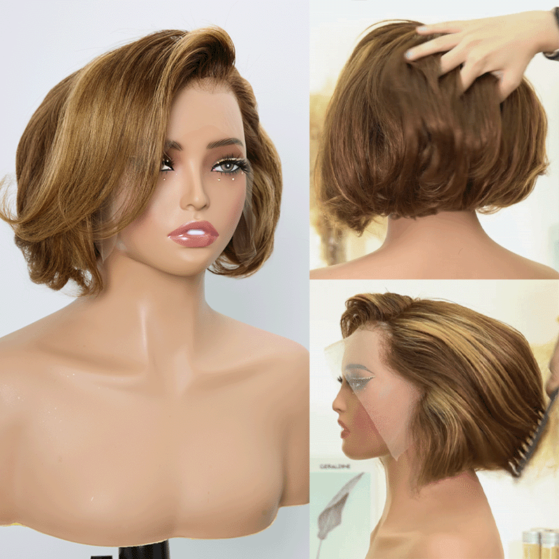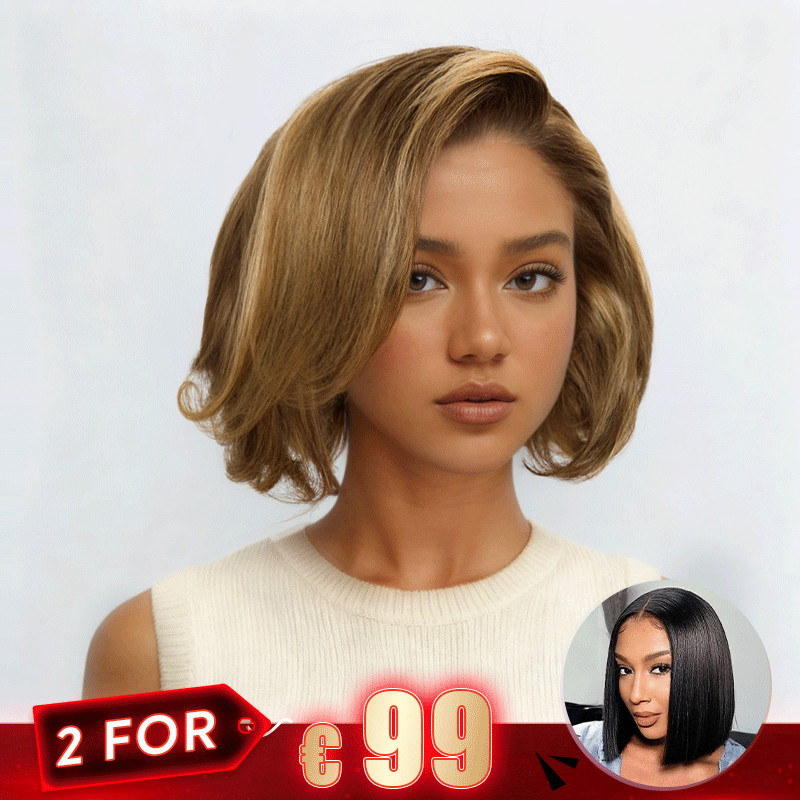 2 𝑭𝑶𝑹 €99🔥Doux Et Naturel Couche Highlight 13x2 Dentelle 300% Densité +2x6 Dentelle Bob Perruque