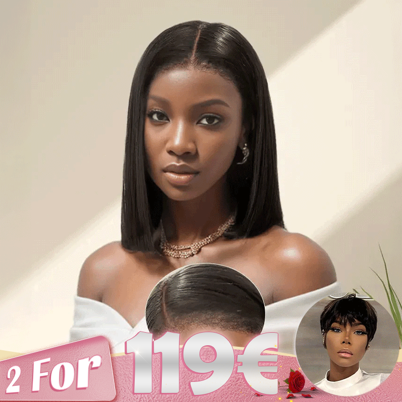 2 𝑭𝑶𝑹 €118.88🔥10" Glueless 13x4 Lisse 4C Edeges Bob+Glueless Pixie Court Perruque Sans Colle