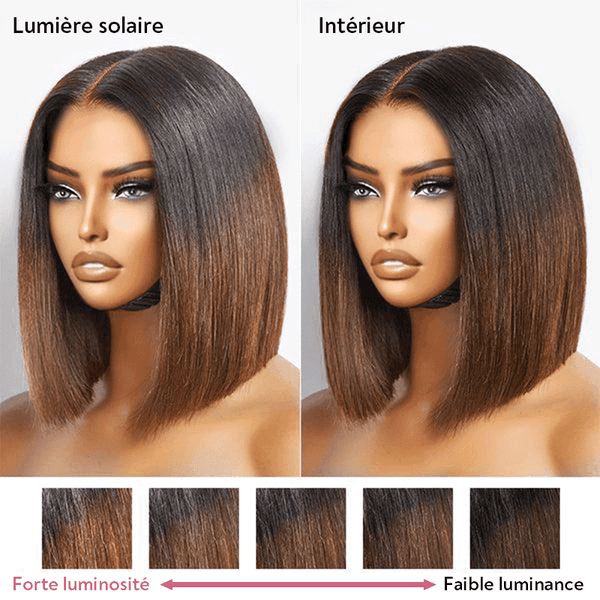 Ombre Marron 2x6 dentelle lisse 250 densité ; Noir 2x6 Dentelle 250 densité,Noir pas de dentelle lisse 200 densité