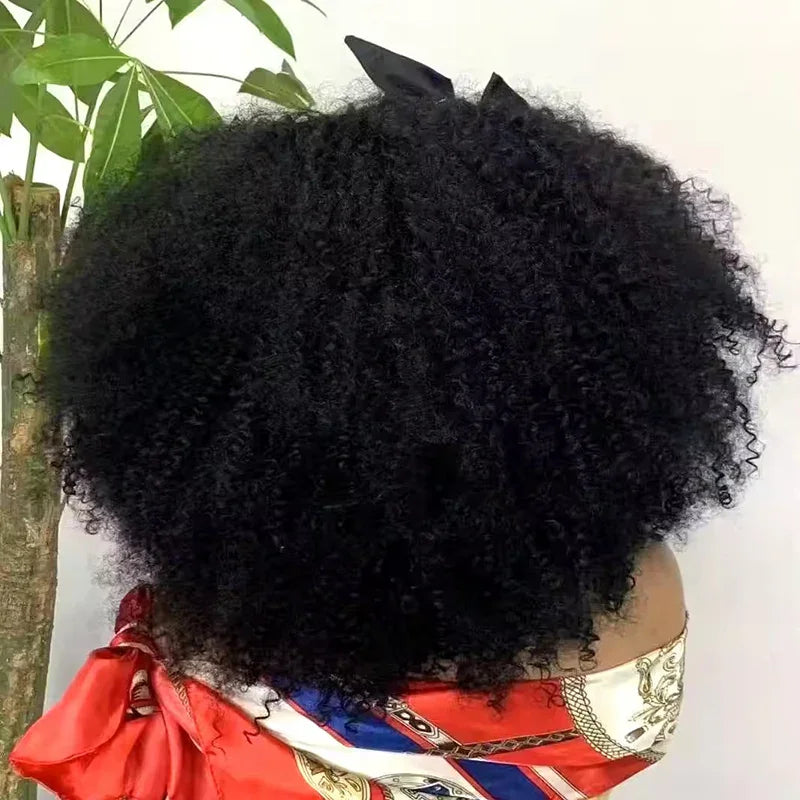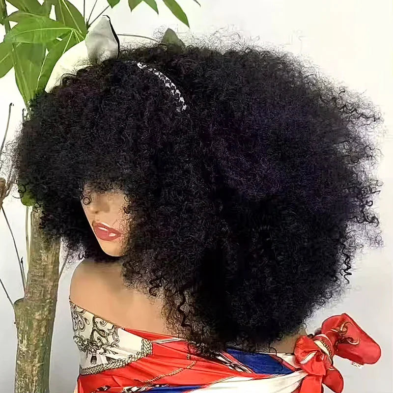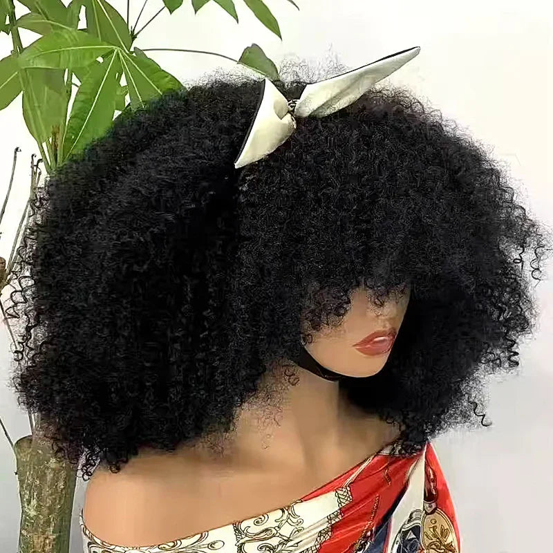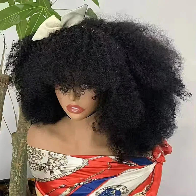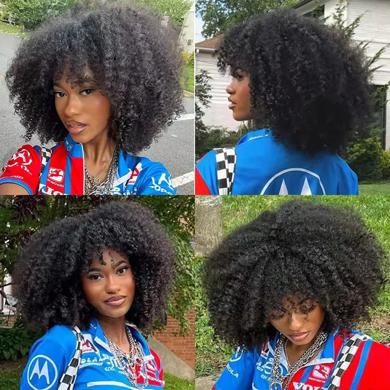 Glueless Style Brésilien Afro Kinky Curly Bob Perruque Sans Colle Avec Frange 350% Densité