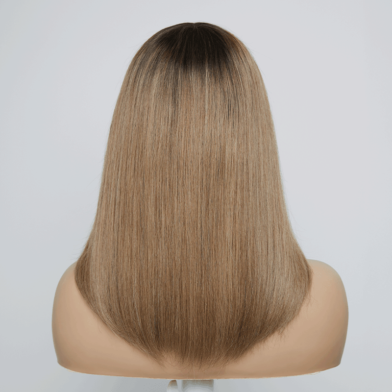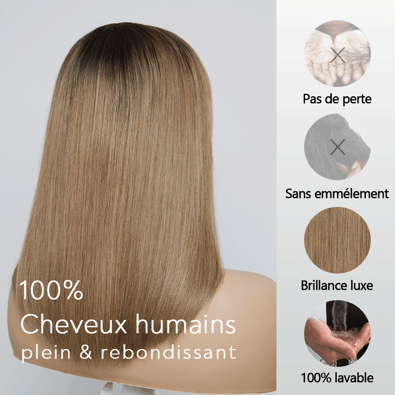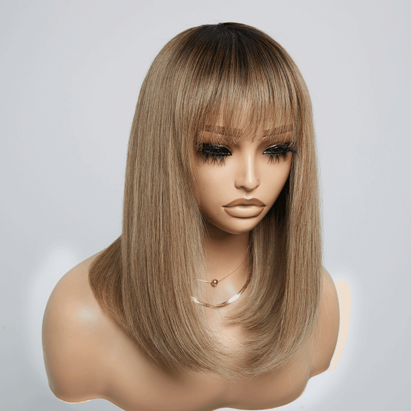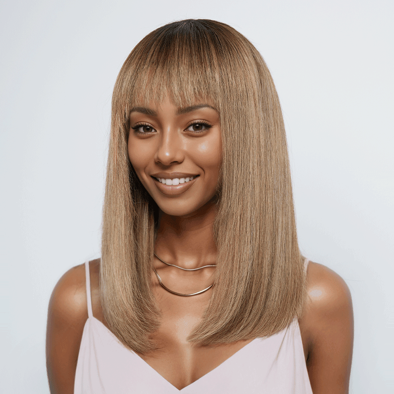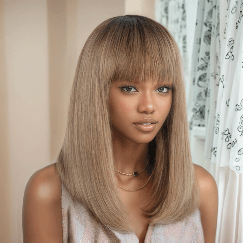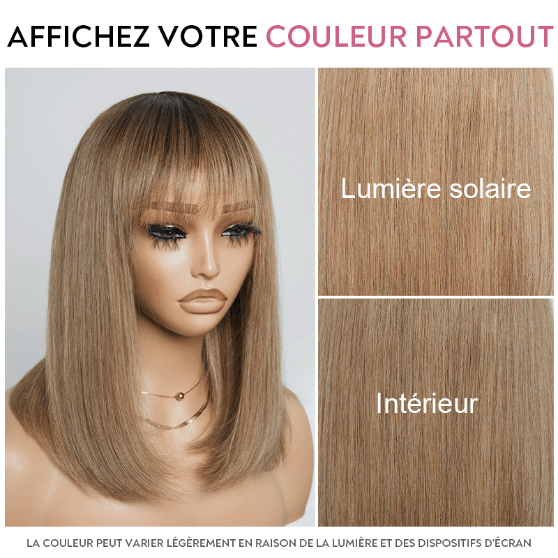 Ready to Wear Glueless Couleur Ombre Thé Lait Dégradé Lisse Perruque Sans Colle Bob Avec Frange