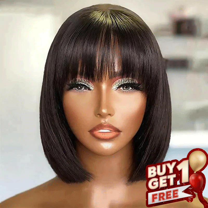 𝑩𝒖𝒚 1 𝑮𝒆𝒕 1 𝑭𝒓𝒆𝒆💥 Glueless Bob Perruque Avec Frange Perruque Cheveux Humains 200% Densité