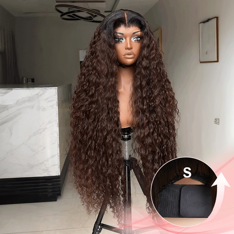 Glueless Rebondissement Bouclé Couleur Ombre Brun 5x5 Perruque Sans Colle 300% Densité