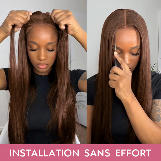 Texture Parfaite Glueless 13x4 Perruque Sans Colle Couleur Brun Chocolat Straight Cheveux Humains