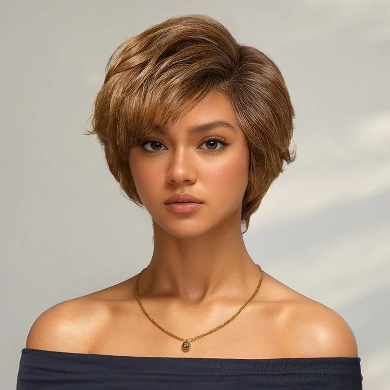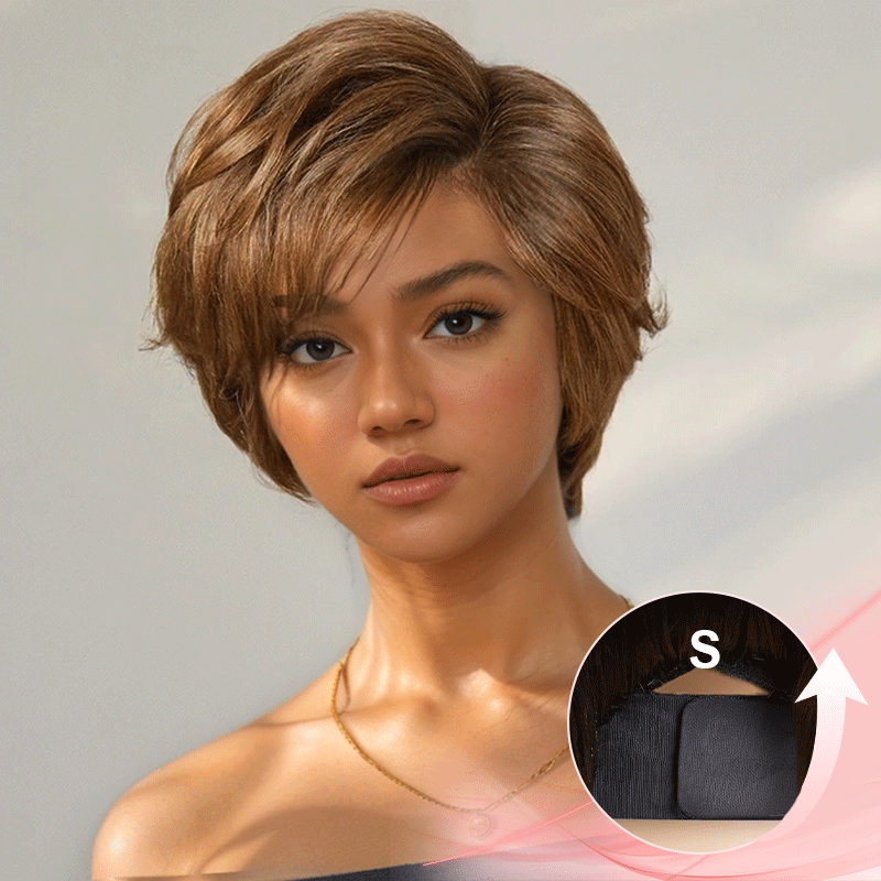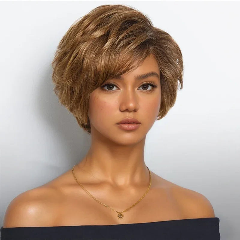 Glueless Couche Sans Nœuds Couleur Blonde Miel 7x4 Perruque Coupe Pixie Sans Colle