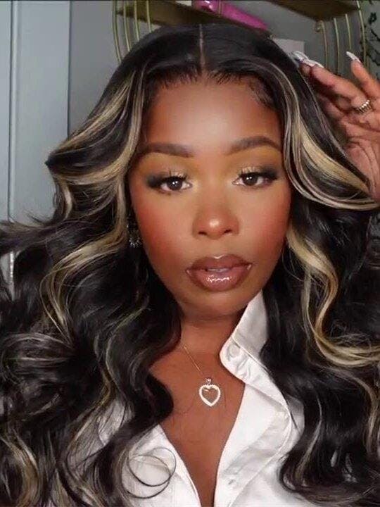 Glueless Luxe Couche 13x4 Highlight Perruque Sans Colle Ondulé Cheveux Humains Wear Go 250% Densité