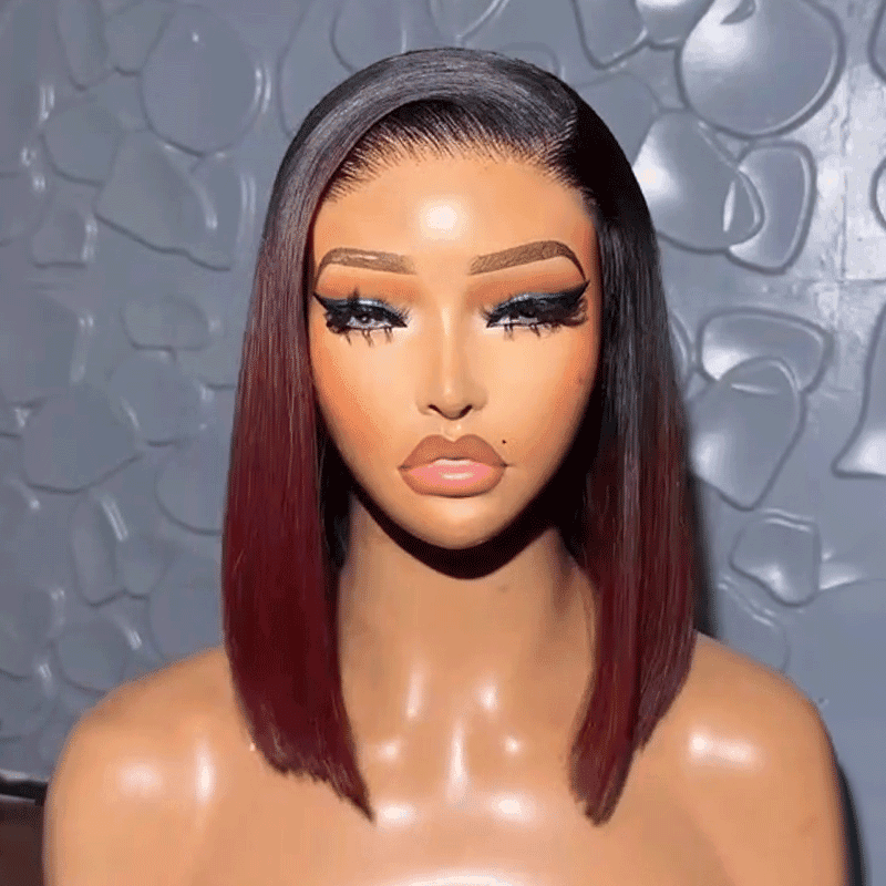 Glueless Dégradé De Couleur 99J Bob 5x5 Perruque Sans Colle Wear Go Lisse