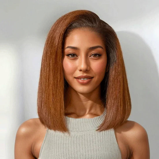 𝐏𝐫𝐞̂𝐭 𝐞𝐧 𝟐𝟒𝐡⚡Glueless Gingembre Ombre Coupe Émoussée Lisse Bob 9x6 Perruque Sans Colle