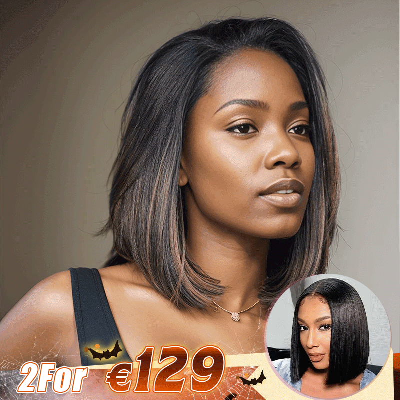 2 𝑭𝑶𝑹 €129🔥 Glueless Nœuds Pré-blanchis Highlight 5x5 Perruque Sans Colle+2x6 Dentelle Bob Perruque