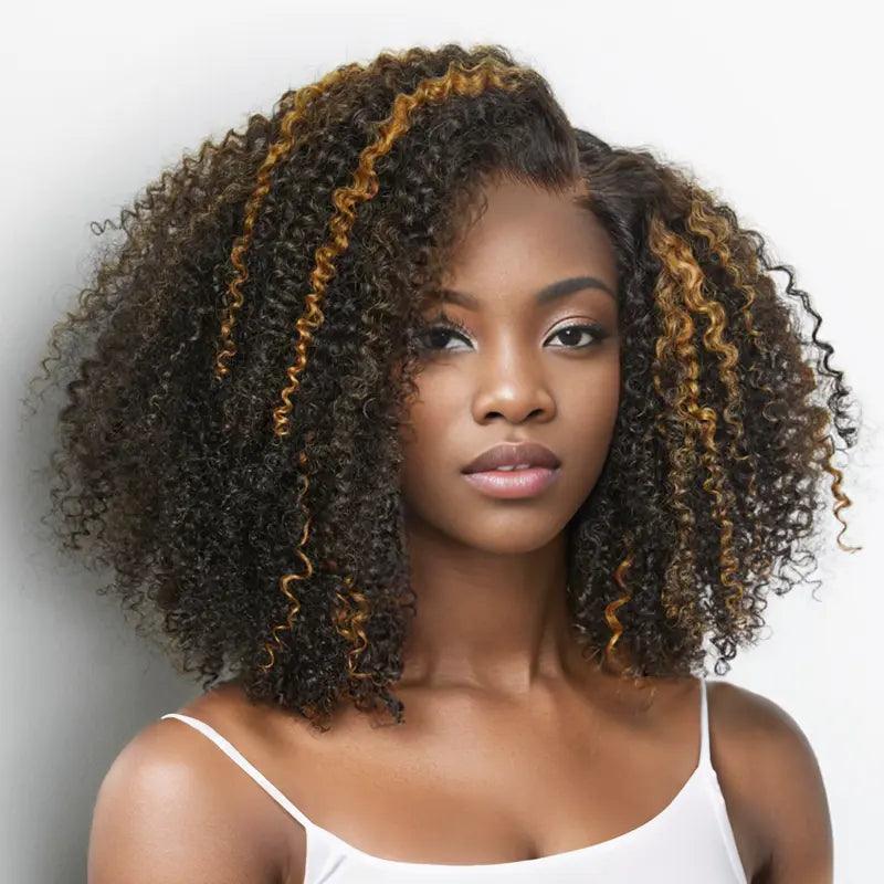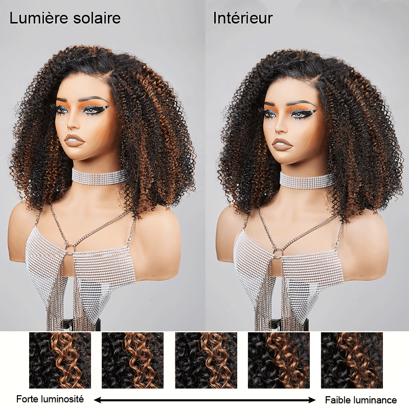 9x6 Glueless Marron Highlight Bob Perruque Sans Colle Kinky Curly