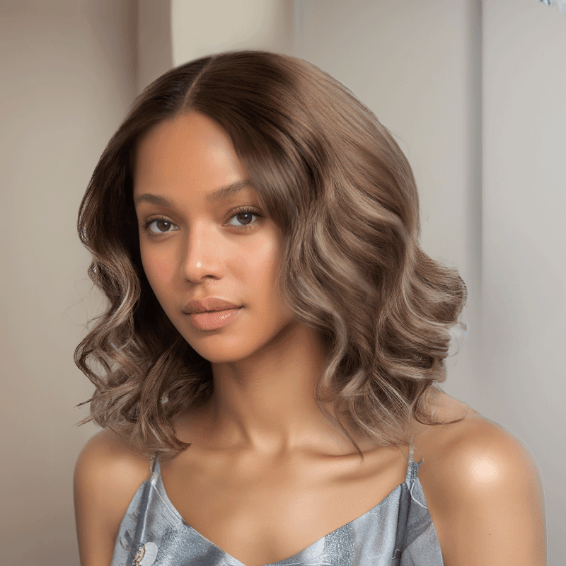 Style Frais Glueless Pas Nœuds Couleur Marron 13x4 Highlight Perruque Sans Colle Ondulé Installation Instantanée