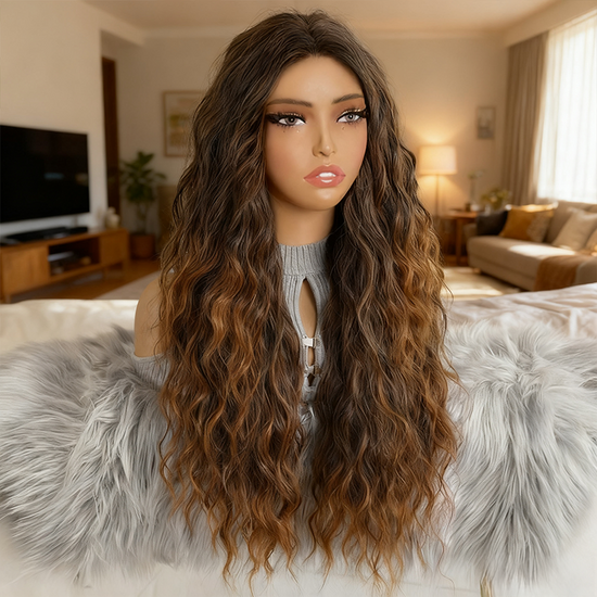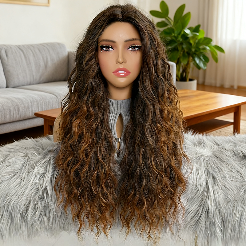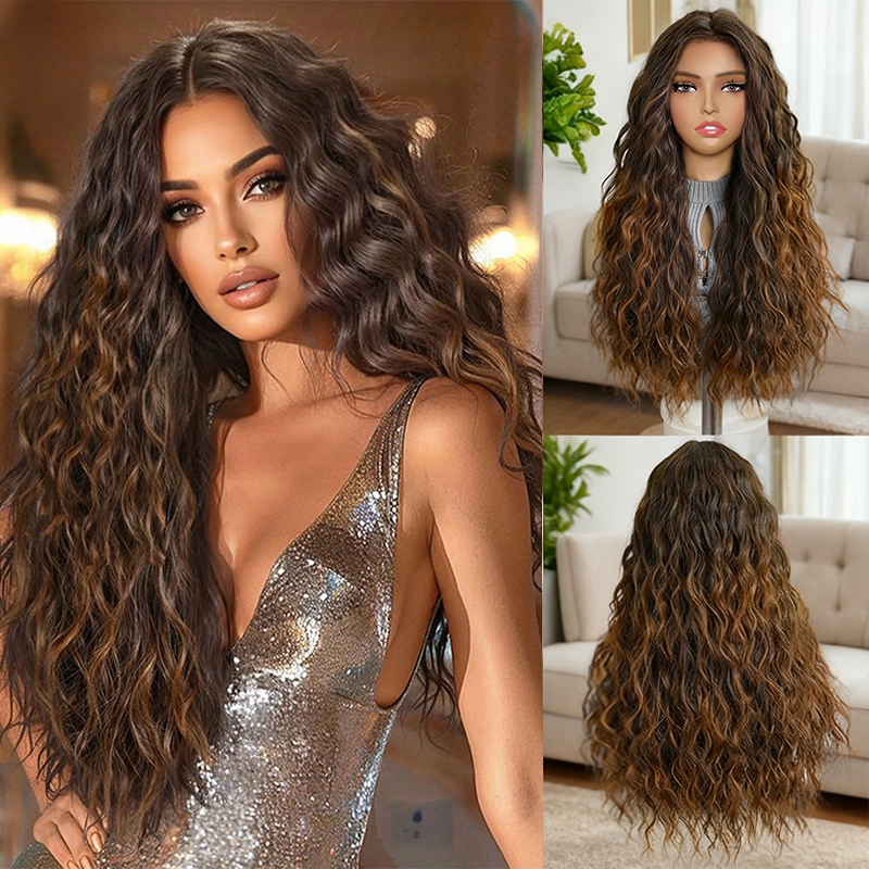 Essentiels De Fête Glueless Couleur Mèches Blonde 4x4 Perruque Sans Colle Bouclé 250% Densité