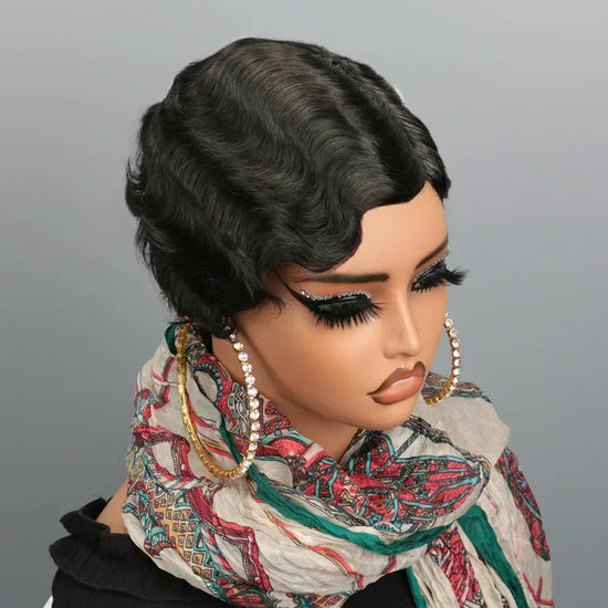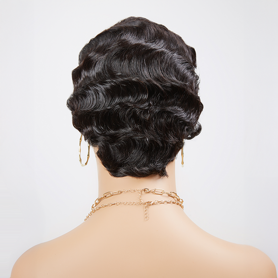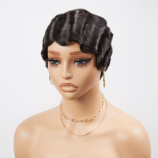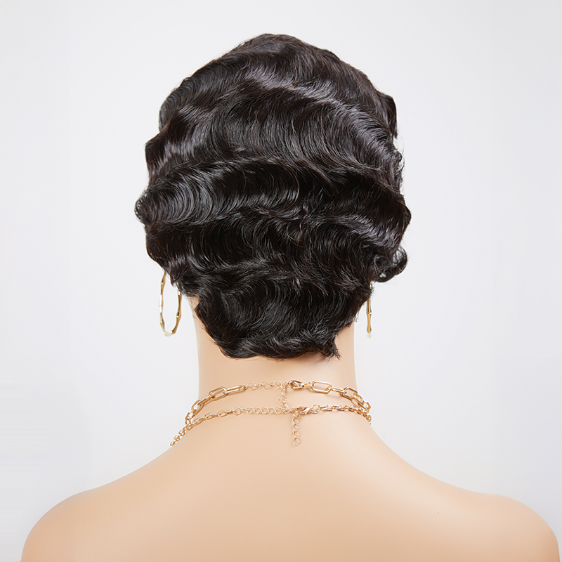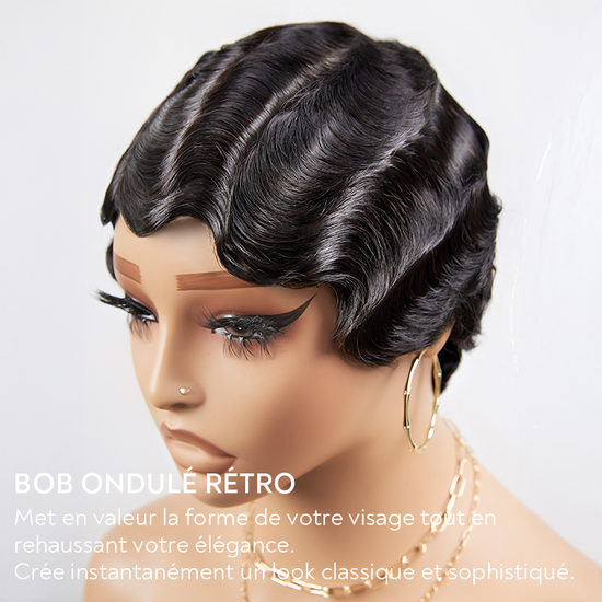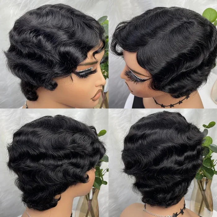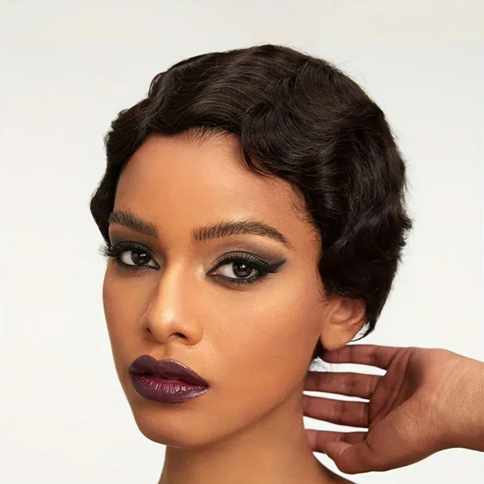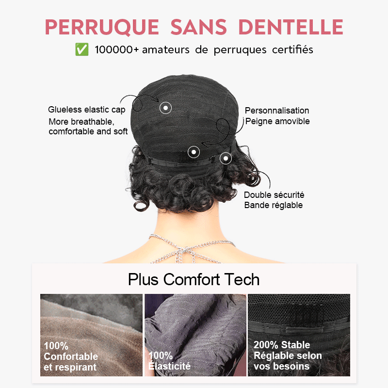 𝐏𝐫𝐞̂𝐭 𝐞𝐧 𝟐𝟒𝐡⚡Perruque Léger Résistante Glueless Noir Perruque Coupe Pixie Eau Ondulée