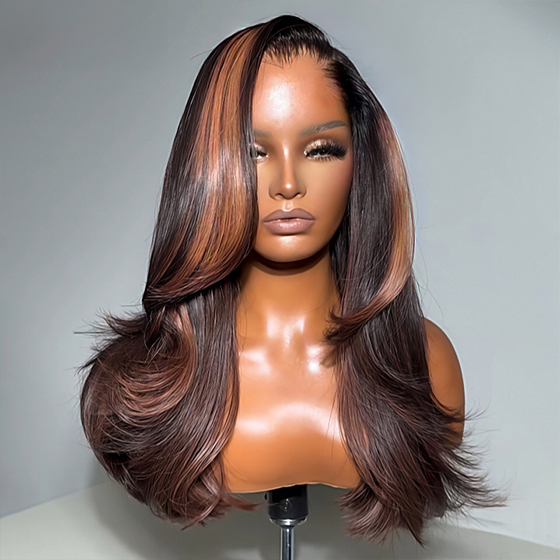 Style Salon Luxueux Glueless Couleur Brun Highlight 7x4 Perruque Sans Colle Body Wave