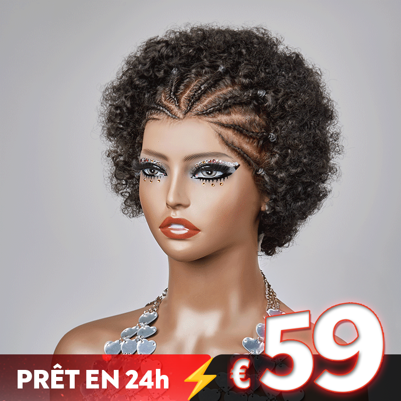 𝐏𝐫𝐞̂𝐭 𝐞𝐧 𝟐𝟒𝐡⚡Pré-tresse Patron Mature Boucle Afro 3 Couleur 13x4 Dentelle Bob Perruque Cheveux