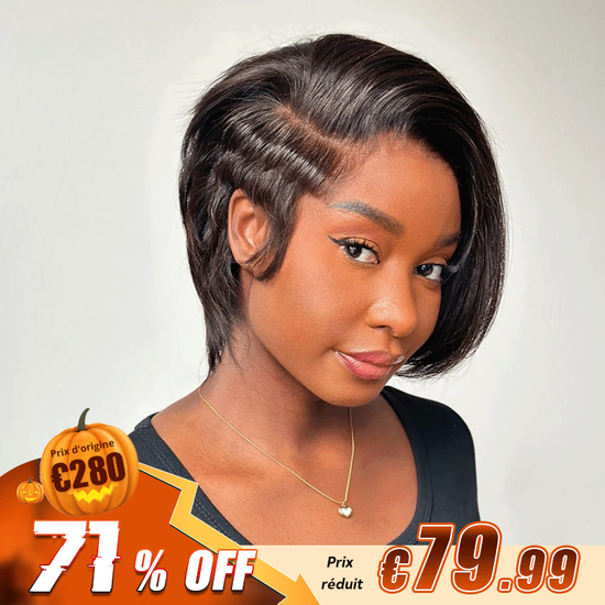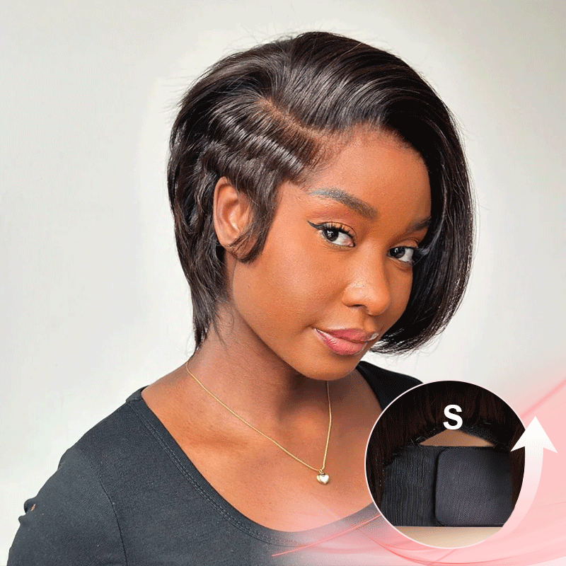 Moderne Glueless Coupe Courte Pixie Avec Une Longue Frange Latérale 7x4 Perruque Sans Colle