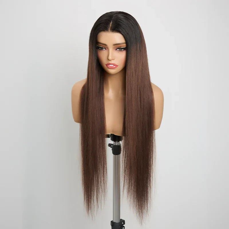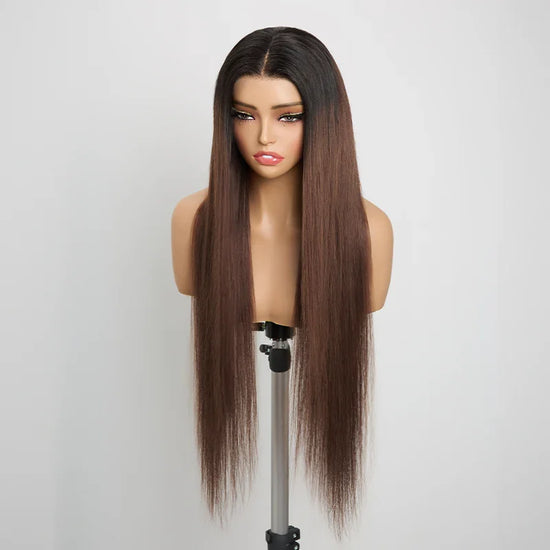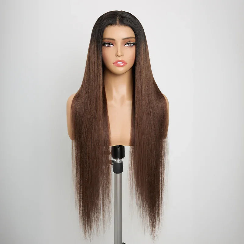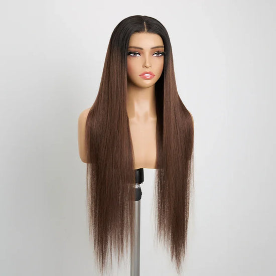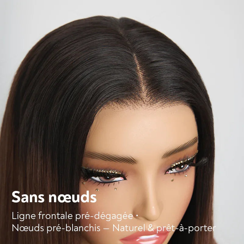 Séparation Libre Glueless Couleur Ombre Brun 13x4 Perruque Sans Colle Lisse 250% Densité