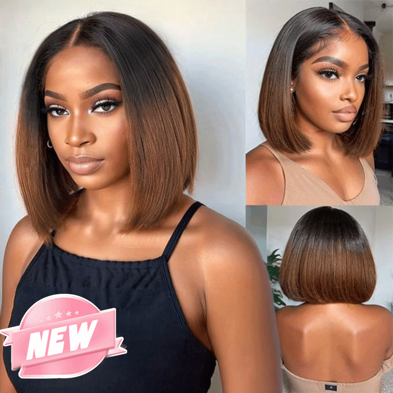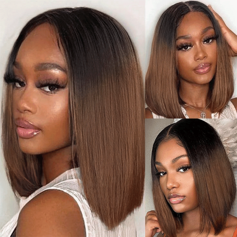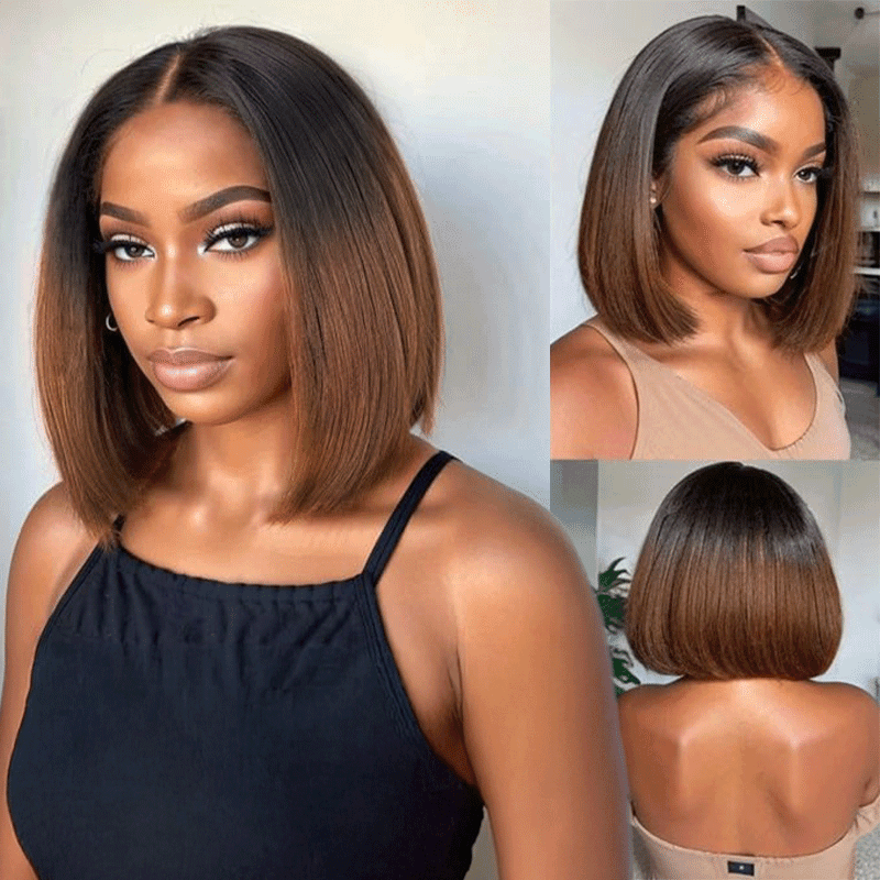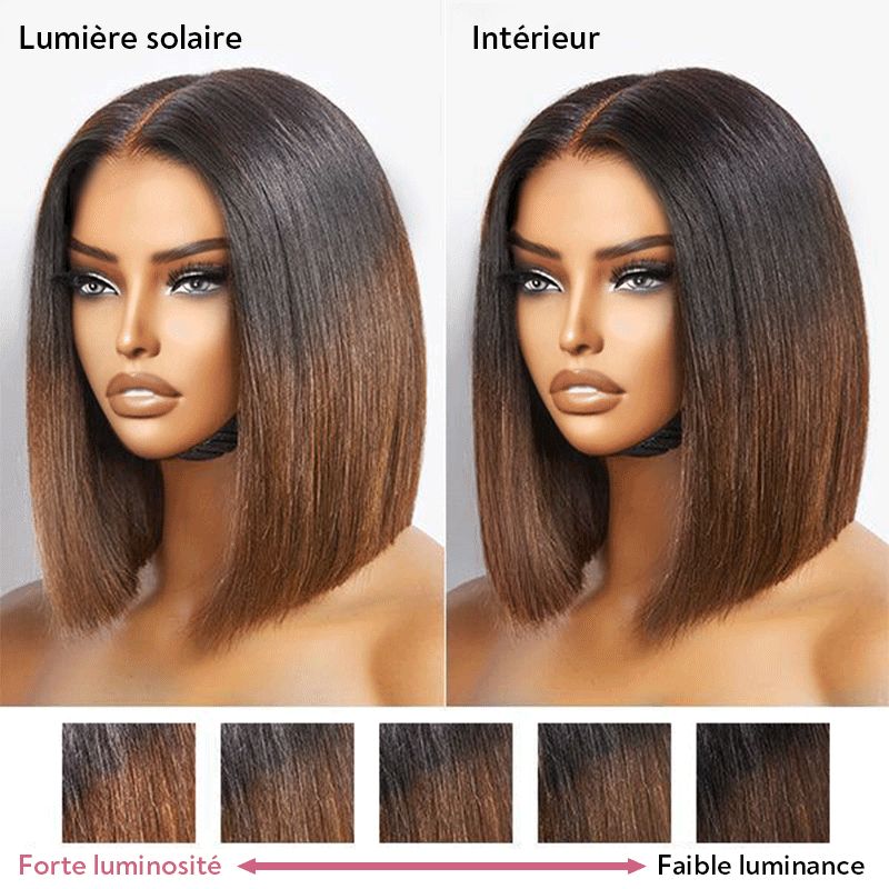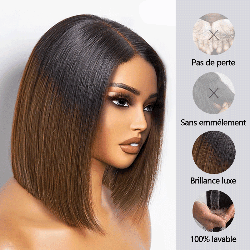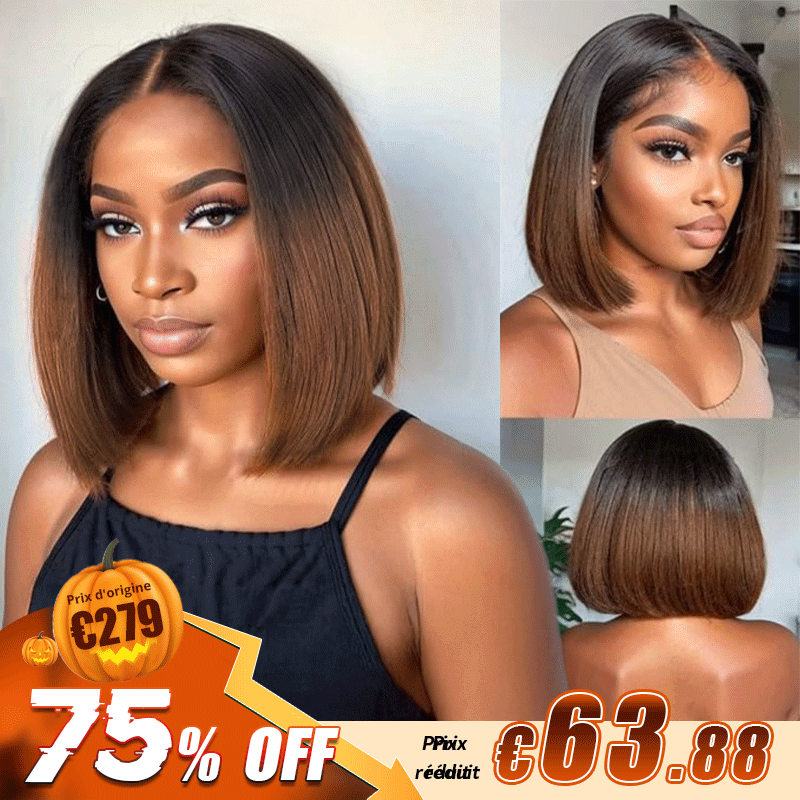 SHINE Design Glam Sans Effort Ultra-plein Ombre Brune Perruque Bob 2x6 Dentelle 250% Densité