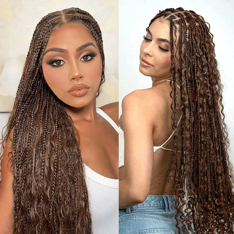 đ©đđ 1 đźđđ 1 đđđđđ„36 Pouces Perruque TressĂ©e BohĂšme Brun Chocolat En Dentelle ComplĂšte Avec Cheveux De BĂ©bĂ© SynthĂ©tiques De QualitĂ© SupĂ©rieure 300% DensitĂ©