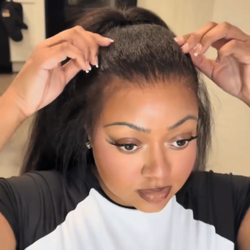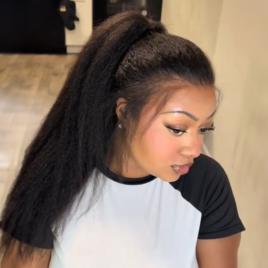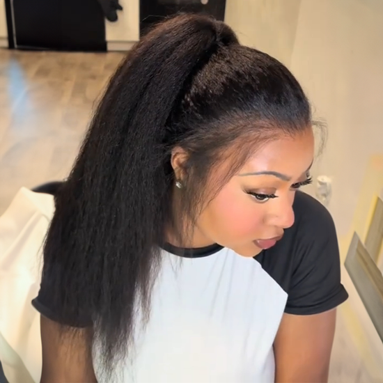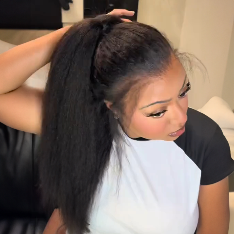 Confortable & Légère Perruque En Dentelle 360 Kinky Straight Casquette À Cordon Flexi-Fit Invisible