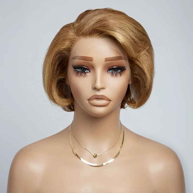 𝐏𝐫𝐞̂𝐭 𝐞𝐧 𝟐𝟒𝐡⚡Pose Facile Et Rapide Perruque Highlight Coupe Pixie 13x4 Dentelle Lisse Cheveux Humains