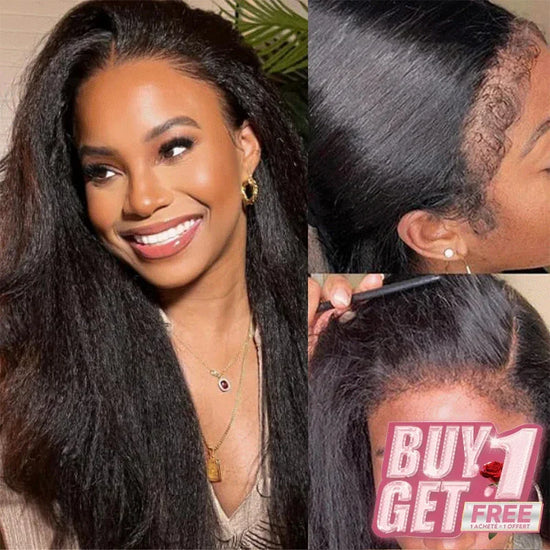𝑩𝒖𝒚 1 𝑮𝒆𝒕 1 𝑭𝒓𝒆𝒆💥 13x4 250% Densité 4C Edges HD Lace Frontale Perruque Cheveux Humains Kinky Straight