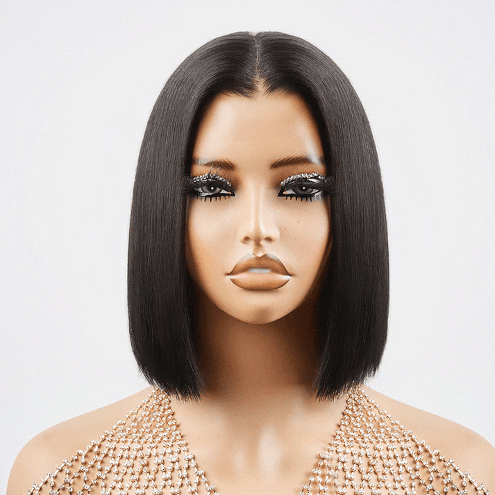Taille de dentelle Perruque 1 Bob Lisse Noir Perruque: 2x6 Dentelle-180% Densité;