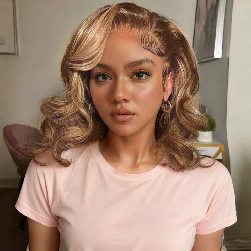 Effet Volume Instantané Glueless 7x4 Mèches Blondes Miel/Naturel Perruque Sans Colle 250% Densité