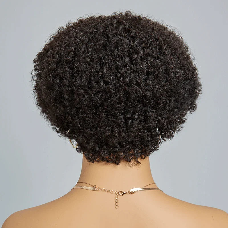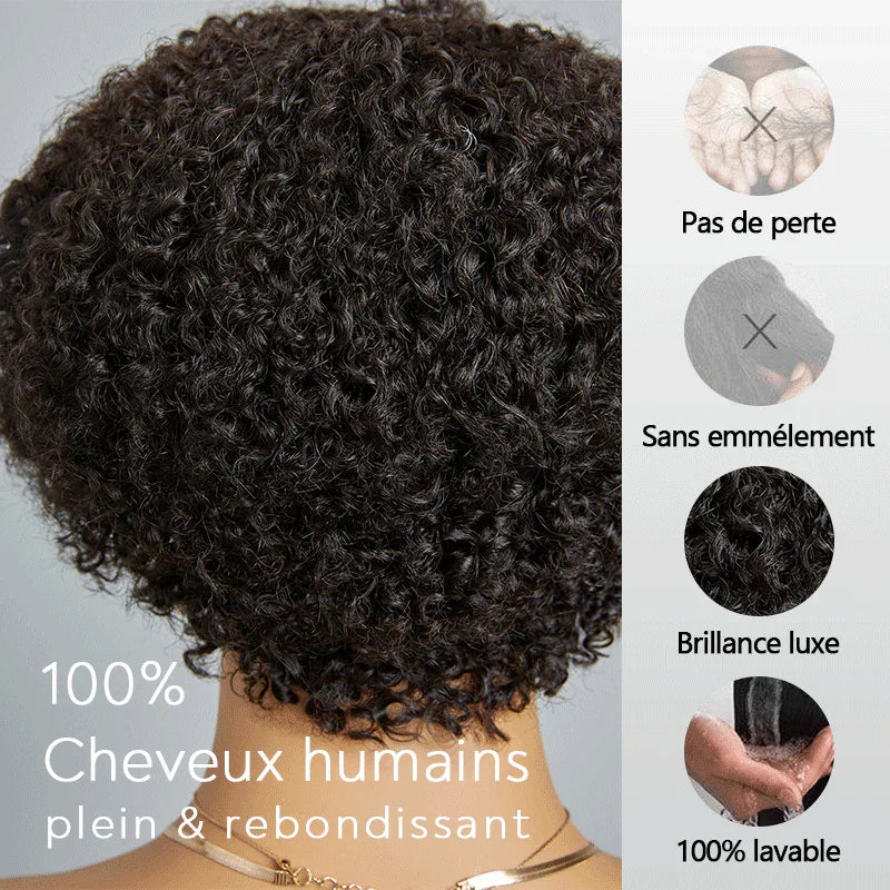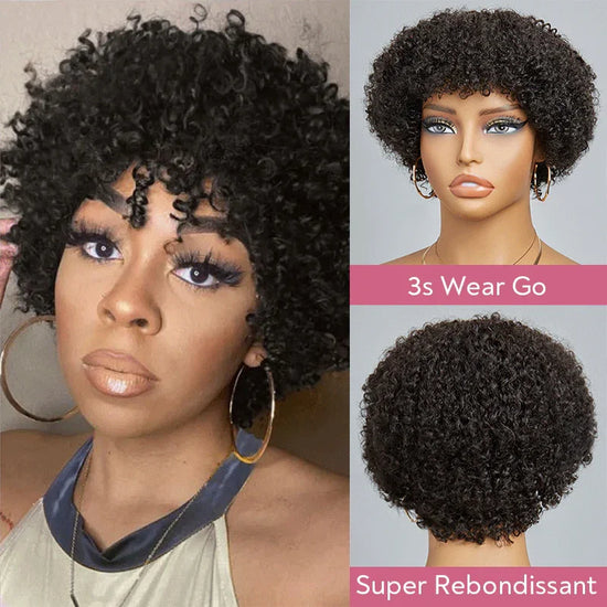 𝐏𝐫𝐞̂𝐭 𝐞𝐧 𝟐𝟒𝐡⚡Natural Look Perruque Noir Pixie Cut 13x4 Dentelle Bouclés Avec Frange Cheveux Humains