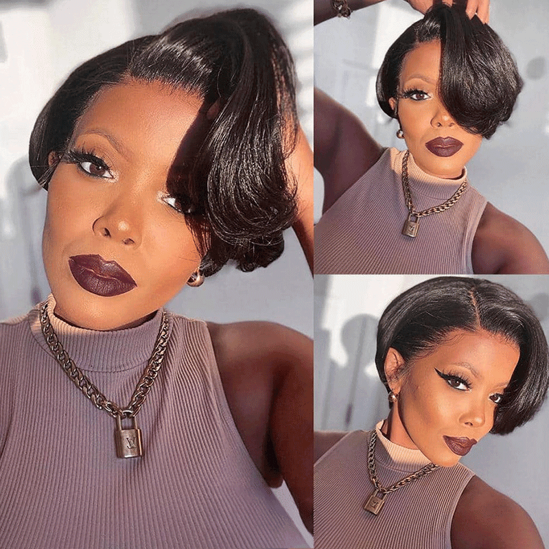 Perruque Pixie Cut 13x4 Lace Frontale Straight Perruques Cheveux Humains