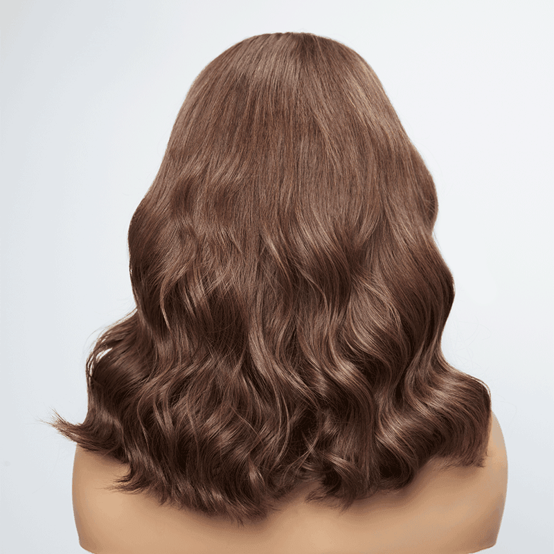 Pour les perruques bouclées et ondulées, vous devez lisser les cheveux avant de les mesurer. Etirez doucement les cheveux jusqu'à leur longueur maximale, puis mesurez du haut de la perruque jusqu'à l'extrémité des cheveux.