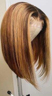 Ultra-doux Glueless Couleur Mèches Blond Miel Ombré Bob Wear Go 4x4 Perruque Sans Colle Lisse