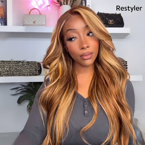 Glueless 13x4 Couleur Highlight #4/27 Perruque Sans Colle Lisse Casquette À Cordon Flexi-Fit