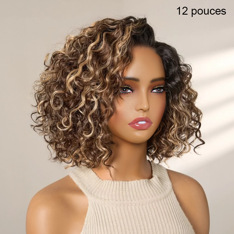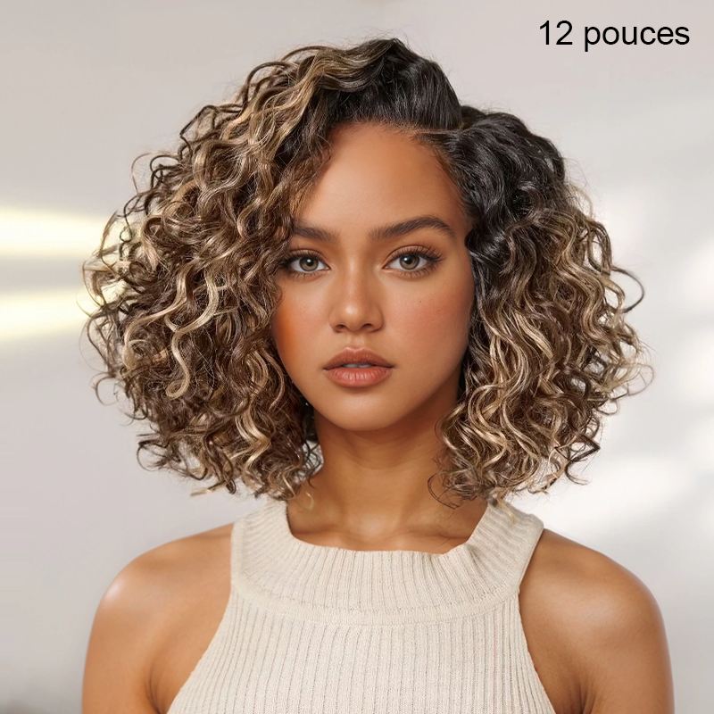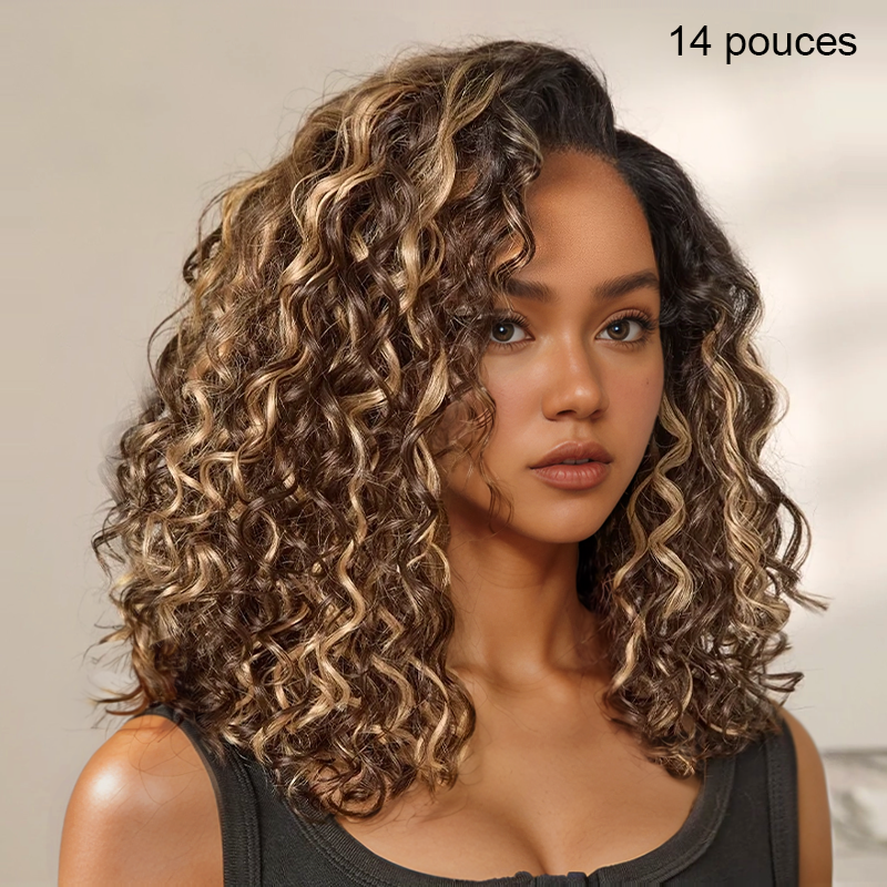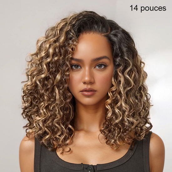 Glueless Couleur Mèches Blondes & Noir Naturel 5x5 Wear Go Perruque Sans Colle Bouclé