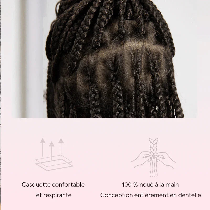 C'est un produit vraiment incroyable. L'emballage était très professionnel, ce qui a confirmé mon admiration pour ce produit. La perruque est superbe et la dentelle est de très haute qualité. La double dentelle à l'arrière est solide et maintient les cheveux en place sans être trop visible. Les pointes sont très fournies et superbes. C'est de loin l'une des meilleures perruques tressées bohèmes que j'ai testées !
