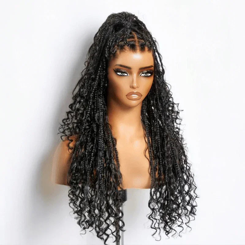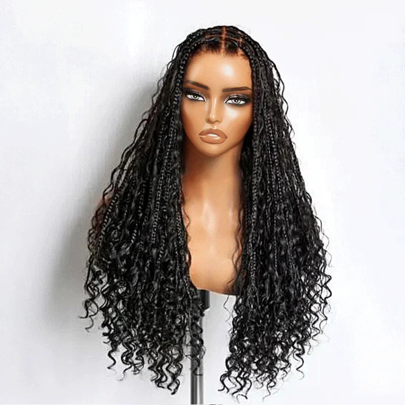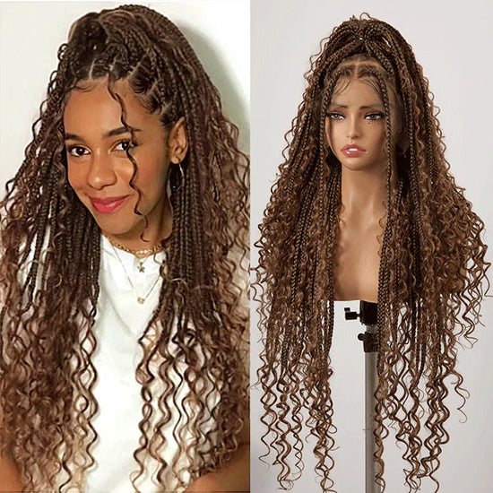 36 Pouces Perruque Tressée Bohème En Dentelle Complète Avec Cheveux De Bébé Synthétiques De Qualité Supérieure 300% Densité