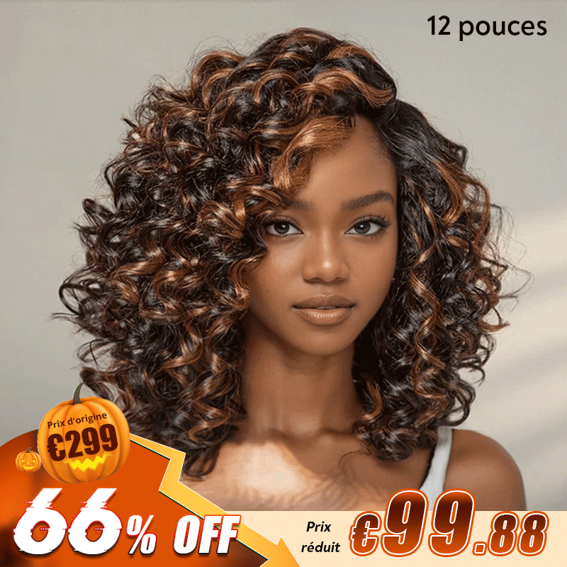 Boucles Rebondies Glueless Couleur Cuivre Highlight 7x4 Nœuds Blanchis Perruque Sans Colle