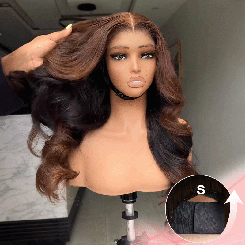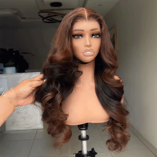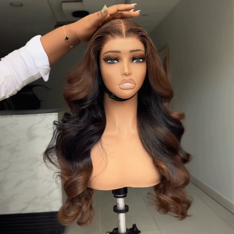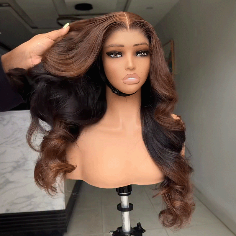 Glueless Sans Nœud Couleur Brun Ombré 4x4 Perruque Sans Colle Body Wave 250% Densité